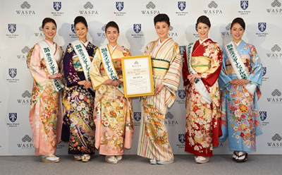 プレス発表会では、まず「WASPA BEAUTY アンバサダー就任式」が行われ、「WASPAサポーター」として、11月3日に行われた2016ミス・インターナショナル日本代表選出大会の入賞者5名が艶やかな着物姿で登場しました。2016ミス・インターナショナル日本代表・山形 純菜さんは「WASPAを利用して、日本人女性としての美にさらに磨きをかけていきたいです」と抱負を語りました。