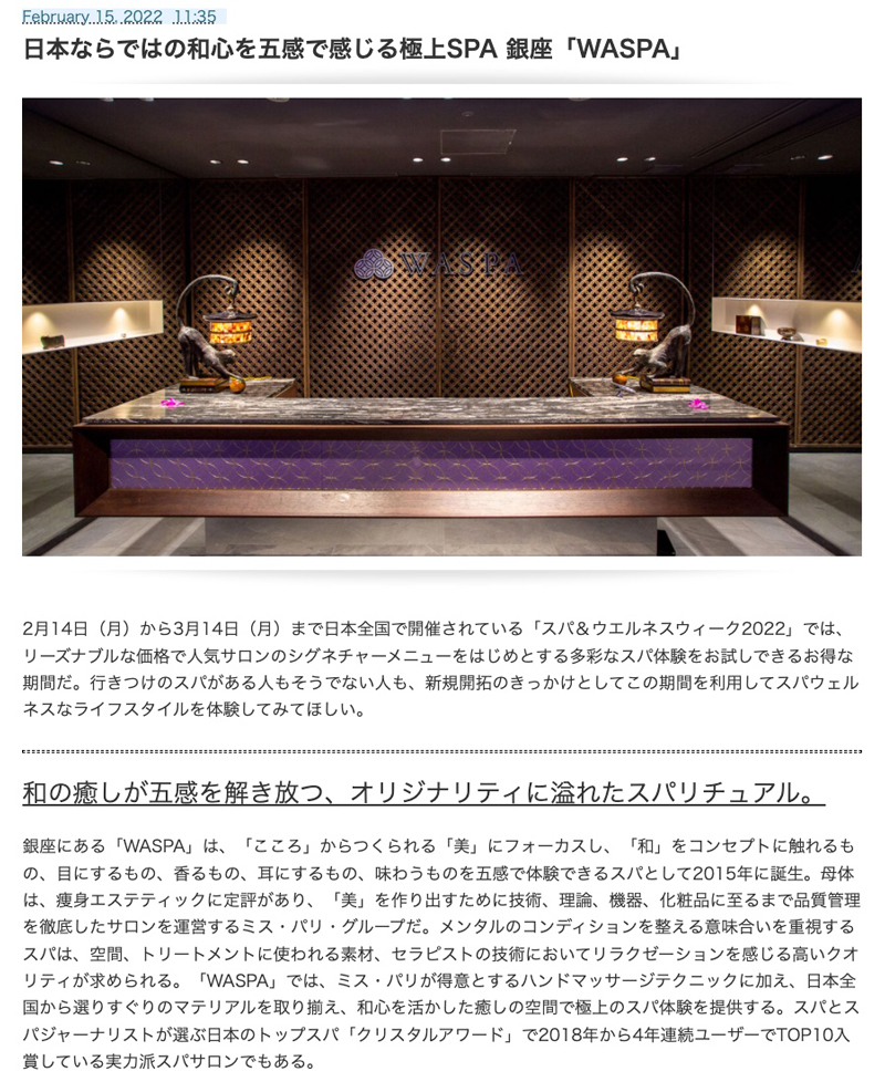 <スパ&ウエルネスウィーク2022>開催中!WASPAも参加しています!!