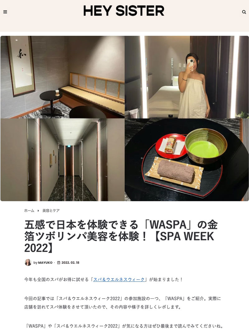 美容情報を幅広く発信するライフスタイルブログ「HEY SISTER」にWASPAの金箔ツボリンパ美容が紹介されました。