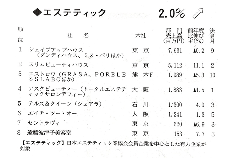 - 「日経MJ」第42回サービス業総合調査 エステティック部門 シェイプアップハウスが第1位!